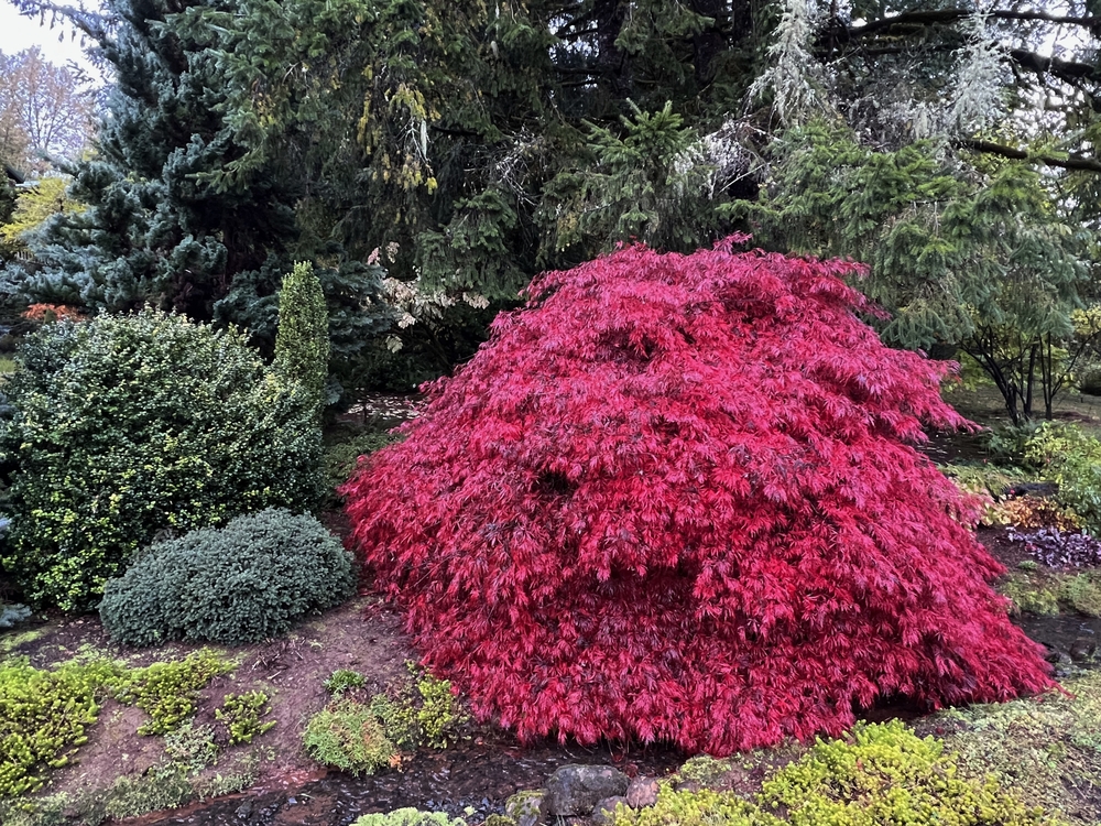 Acer palmatum dissectum 'Crimson Queen', January. First grafted in 1970. Color in October. 2nd photo Acer palmatum 'Villa Toranto' in fall color